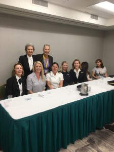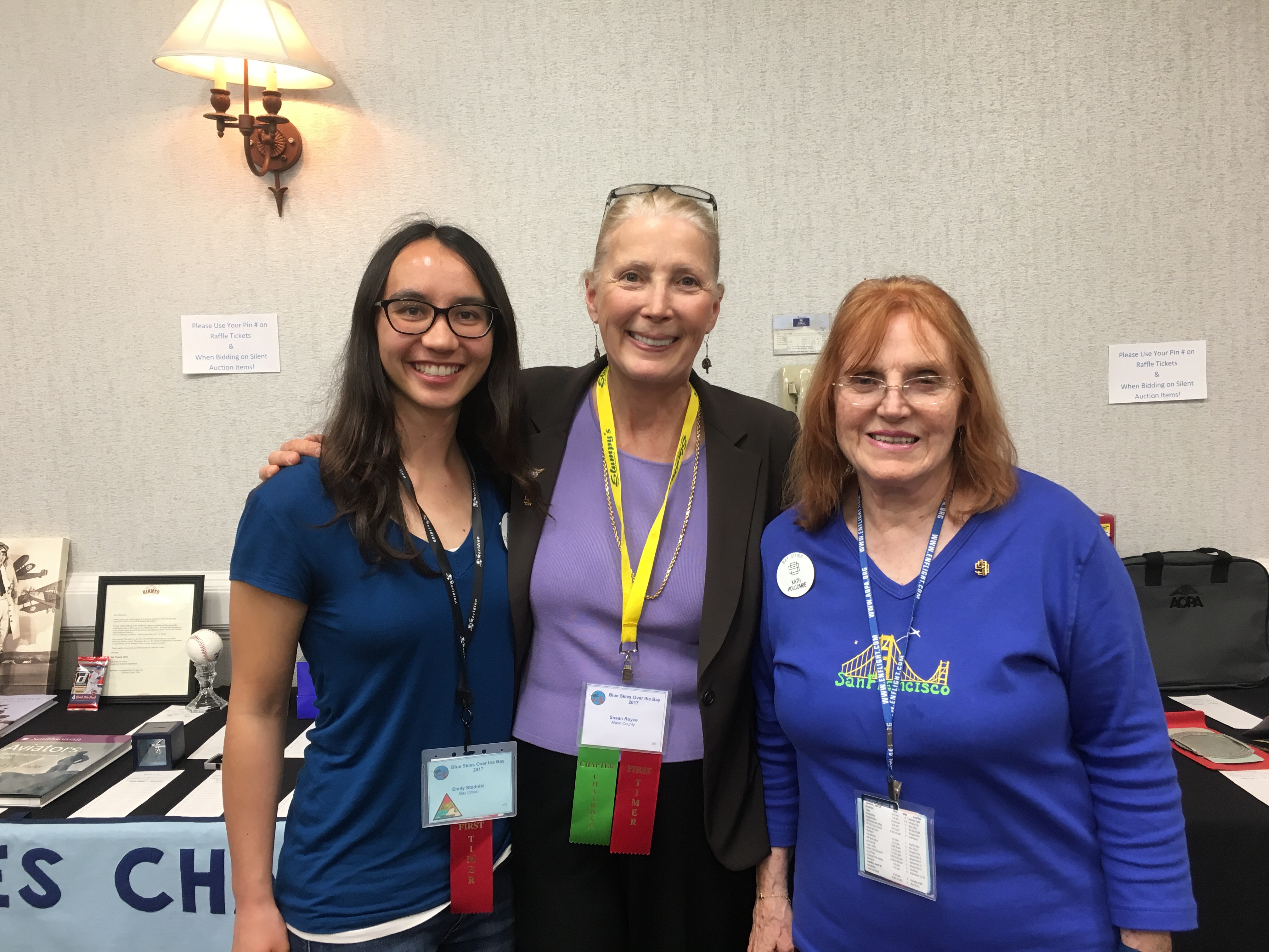 Representing the Marin 99s at the recent Spring Southwest Section Meeting at Oakland on April 27 – 30 were Val Westen and Sue Royce. The Bay Cities Chapter did a stellar job organizing the event, which included several days of seminars, tours, cocktail parties and capped off with a lovely/lively banquet. In photos, Sue with the Professional Pilot Panel. Also, Sue with Emily Stednitz, our recent check ride scholarship recipient and Kath Holcombe, Treasurer of the Bay Cities 99s.