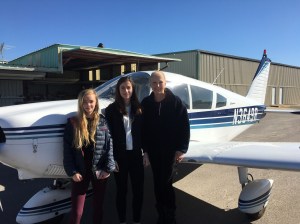 What gives Sue Royce the most joy in life is taking young girls up flying in her Cherokee, especially Maddie Schwarz of Tam High and Petra O’Brien of Drake High. They are both “flying” through the Sporty’s Private Pilot Ground School offered by the Young Eagles program and will be starting their flying lessons very soon. I do believe we have two future airline pilots in the making.