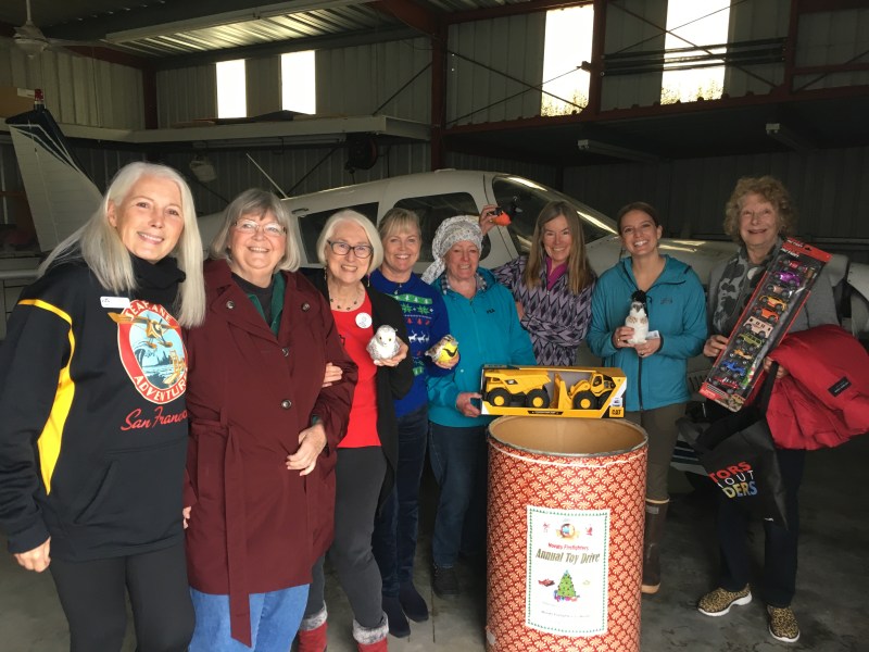 On Saturday December 3, we met at Sue Royce’s (Chair) hangar for a fun holiday gathering. Partners were invited, and both Val Weston’s and Alyssa Abbey’s (Secretary) – Dan & Dan – did join us. There was yummy food as ever, good coffee and Sue’s cozy girl cave (best on Gnoss Field) to enjoy. Being a seasonal party, there was no agenda and everyone got to share what and where they’ve been flying, or what they’ve been up to. The only theme was to support the Novato Firefighter’s Annual Toy Drive to benefit local children, and we put a good number in the toy bin. We had a new member, Sara Ward from Santa Rosa join. She started flying recently and has ambitions to fly for the airlines. We certainly want to keep supporting and encouraging her. Happy Holidays everyone!