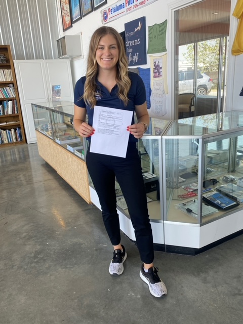 Aspen Blue – passed her Commercial Rating Check Ride and was provided a scholarship by the Bay Cities 99s.