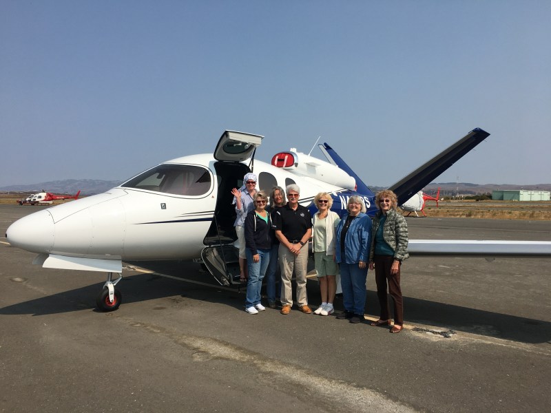 In attendance was Barbara, Rita, Dianna, Lisa, Margy, Sue S. and Sue R. We covered various topics, such as Barbara’s Power Point to promote our Gnoss Field, Marielle’s painting of the compass rose at Angwin and our upcoming Girl Scout Aviation Badge Classes scheduled for October 16 and October 23. Pat Scanlon gave us a First Class tour of his new Cirrus Vision Jet. WOW!!!